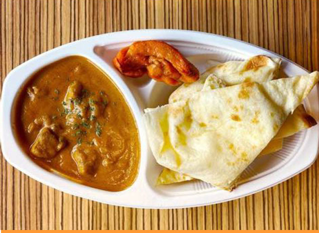 サラダ、タンドリーチキン、シークカバブ(2)、チョイスカレー(2)、チーズナン(OR)ナン(又)ライス、ソフトドリンク(2)、デサート(2)